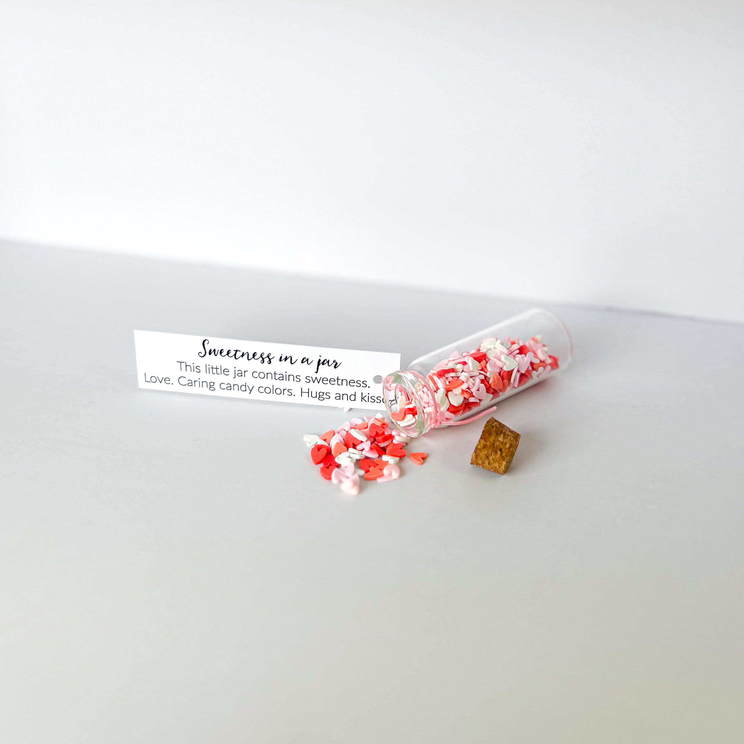 Een lief cadeautje om iemand te laten weten dat je aan diegene denkt! Sweetness in a jar is een glazen potje met daarin hartjes confetti, liefde, kusjes en knuffels en dat alles in een klein potje! Pas maar op want als je deze liefde verspreid zal je het dubbel en dwars terug krijgen! Spread the love, spread sweetness in a jar!